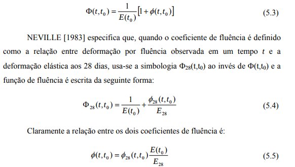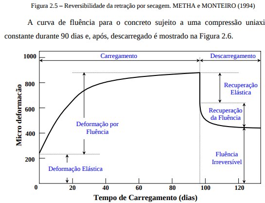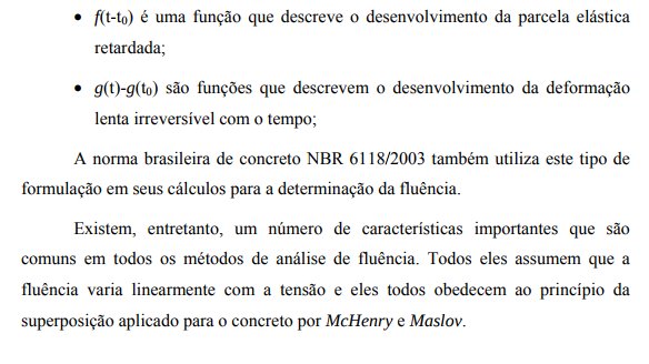 A relevância em se fazer comentários sobre as propriedades que influenciam a deformação por fluência neste capítulo vem do fato de que, tanto a norma NBR 6118/2003 como o programa DIANA levam em consideração estas propriedades no desenvolvimento de seus cálculos para o estudo da fluência. Como ambos serão utilizados para a elaboração deste trabalho, achou-se de maneira fundamental o comentário destas propriedades. Nos próximos capítulos serão descritas algumas representações matemáticas que descrevem o fenômeno da fluência.