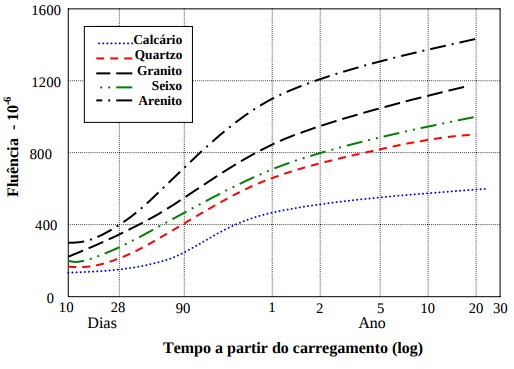 NEVILLE [1997] afirma que o efeito da resistência do concreto no momento de aplicação da carga sobre a fluência vale também quando se usam diferentes materiais cimentícios. De outro modo não seriam possíveis generalizações sobre a fluência de concretos com cinzas volantes ou escórias granuladas de alto forno, pois a literatura relata pesquisas feitas em diferentes condições de ensaio. Pode-se dizer com confiança que o modelo da evolução da fluência e da recuperação não é alterado pela presença de cinza volante classe C ou Classe F, escoria granulada de alto forno ou sílica ativa, ou mesmo uma combinação desses materiais.