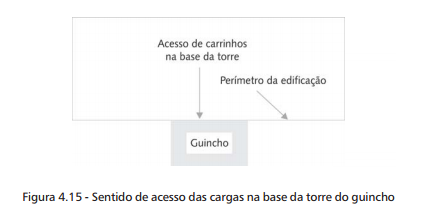 (e) Prever opção de montagem em dois pavimentos, já que esta será uma alternativa bastante útil em canteiros restritos. Um problema que pode surgir ao planejar-se um sistema com dois pavimentos é a interferência com a plataforma principal de proteção. Nesse caso, uma solução que tem sido aceita pela fiscalização é o deslocamento da plataforma para a laje imediatamente superior, somente no trecho em que existe interferência.