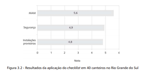 A Figura 3.2 apresenta as notas médias resultantes da aplicação da lista em um grupo de quarenta canteiros de obra, situados em sete cidades do Rio Grande do Sul. O cálculo das notas obedeceu aos critérios explicados anteriormente.