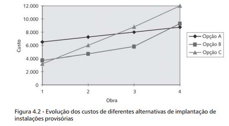 Nesta seção são comparados os custos de três opções de implantação das instalações provisórias, tendo sido adotados os seguintes parâmetros de referência: