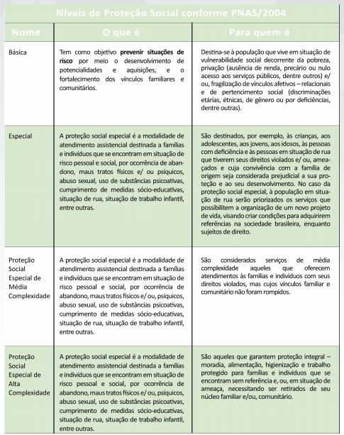 Em 2004, foi elaborada a Política Nacional de Assistência Social (PNAS), aprovada pela Resolução CNAS nº130/2004, que detalha o modelo de gestão do SUAS. A PNAS traz uma inovação muito importante: ao colocar os direitos dos(as) usuários(as) como foco das ações, a política de assistência social passa a incorporar também funções de vigilância social e de defesa dos direitos socioassistenciais, ou seja, a política de assistência social deve agir de maneira a evitar o agravamento das situações de vulnerabilidade e também deve garantir que os(as) cidadãos(as) tenham locais ou órgãos aos quais possam recorrer quando seus direitos forem violados.