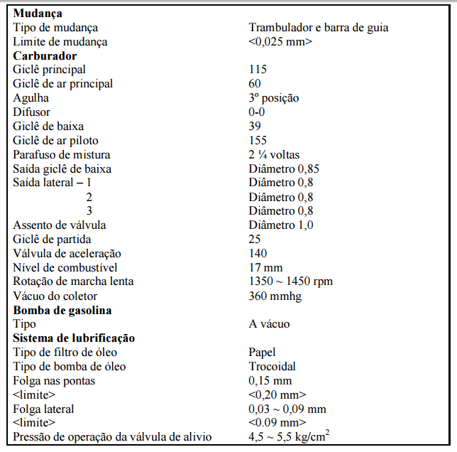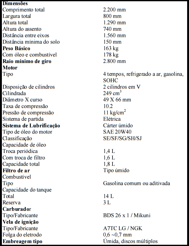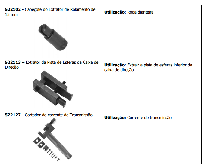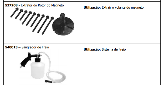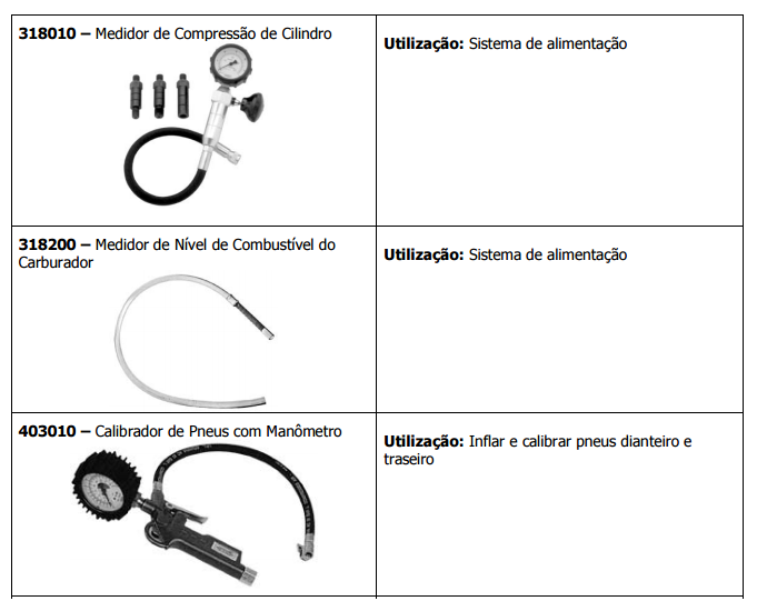 3. Use somente ferramentas métricas ao efetuar serviços na motocicleta. Parafusos e porcas não são intercambiáveis com os de outras normas. O uso de ferramentas e fixadores incorretos pode danificar a motocicleta.