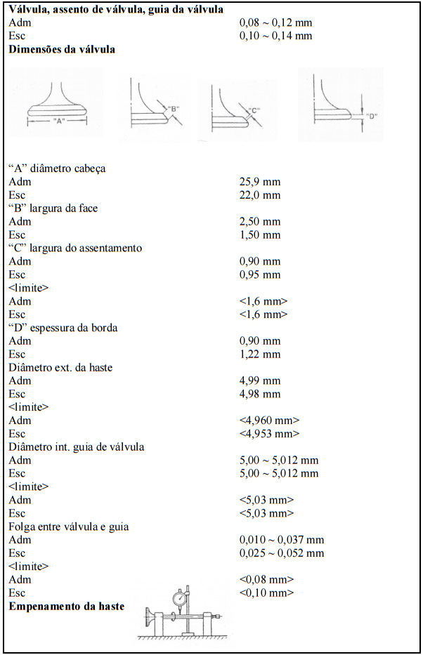 Desmontagem, montagem e manutenção do sistema de válvulas