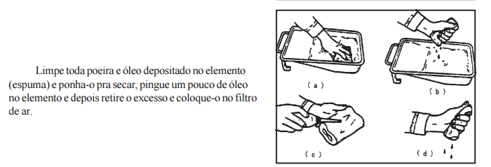 O óleo do motor usado pode causar câncer de pele se permanecer em contato com a mesma por longos períodos. Embora isso não seja provável, a menos que o óleo usado seja manuseado diariamente, recomendamos lavar as mãos com água e sabão logo após o seu manuseio. Mantenha-o fora do alcance de crianças.