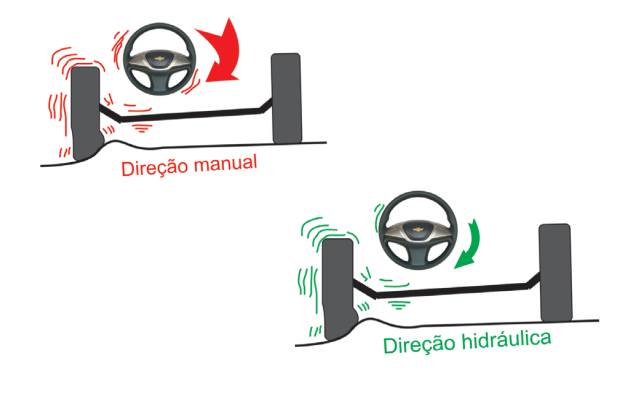 A caixa de direção hidráulica possui a mesma função, e construção da caixa manual, porém possui assistência hidráulica tornando o esforço do condutor mais leve.