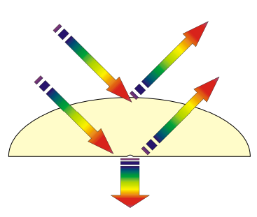 Quando um feixe de luz sai de um material com um índice de refração e penetra em um outro com índice de refração diferente, uma parte desse feixe atravessa a interface e a outra parte é refletida. A quantidade de luz que é refletida na passagem da luz pela interface entre os dois materiais depende da diferença entre os índices de refração. No caso de um raio de luz que sai do ar e penetra em um material, como na tabela no alto da página a seguir, a quantidade de luz refletida é a indicada.