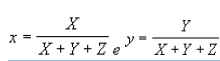 Espaço Yxy - o conceito para os valores XYZ é baseado na teoria dos três componentes da visão de cor (vermelho, verde e azul) e no fato de que todas as cores são vistas como misturas dessas três cores primárias, porém os resultados são de difícil interpretação. Assim, a CIE definiu, em 1931, o espaço Yxy, bidimensional, onde o Y é igual ao Y do triestímulos, e xy são as coordenadas cromáticas calculadas, onde:
