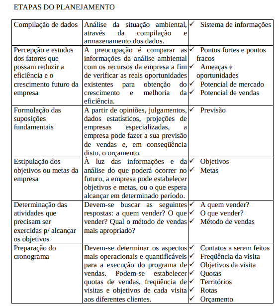 Para executar o plano de vendas, o planejador precisa ter profundo conhecimento dos passos abaixo mencionados