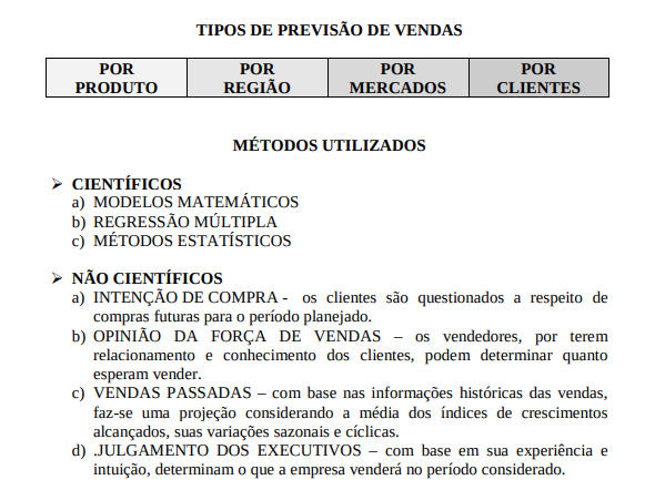 - Escolher o método de previsão mais adequado a cada caso