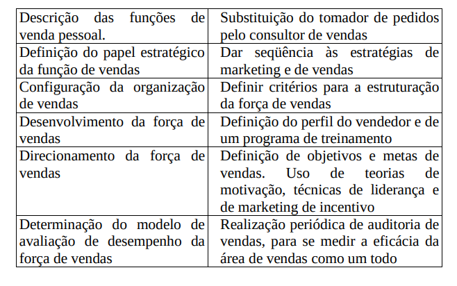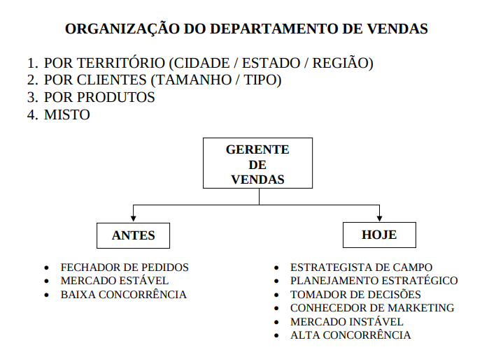 - Organização da força de vendas.