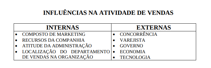 NÍVEL EXTERNO – a atividade de vendas é importante pelo impacto que, de modo geral, causa na economia e na sociedade.