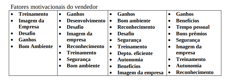 - Avaliação do nível de motivação do pessoal de vendas.