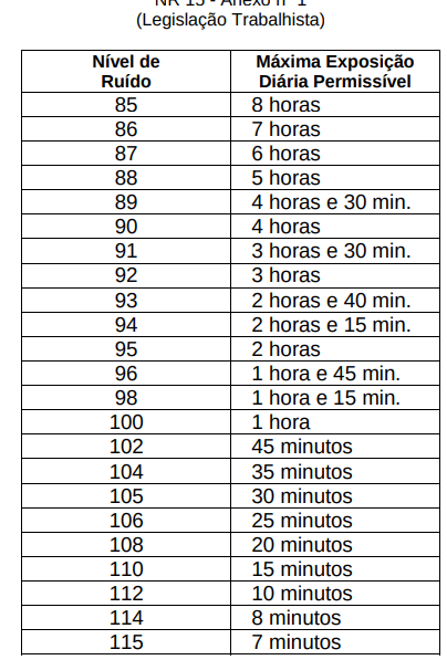 - Não é permitido exposição a níveis de ruído de 115 dB (A) para indíviduos que não estejam adequadamente protegidos.
