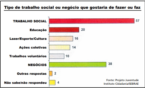 Para incentivar os jovens a pensarem sobre a área de realização de seus sonhos e dar uma visão mais ampla a respeito do que buscam outros jovens para sua vida pessoal e profissional, apresente o gráfico que sintetiza os interesses de grupos pesquisados pelo Instituto de Cidadania, no ano de 2003.