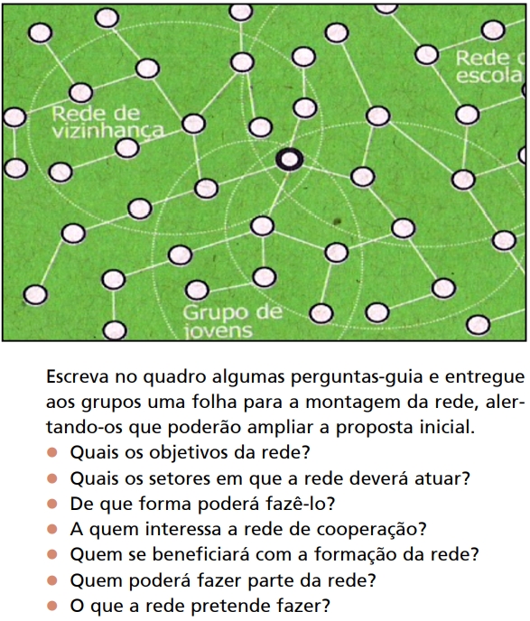 Observe o modelo que parte das relações de um determinado jovem e trace sua rede de cooperação, considerando as respostas dadas às perguntas iniciais e o objetivo da atividade.