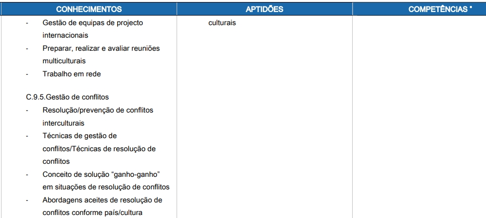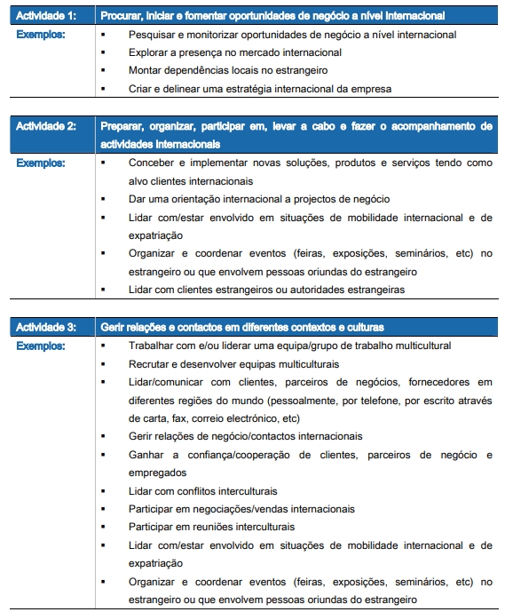 Para uma compreensão plena desta " unidade de qualificação" é importante sublinhar que o contexto profissional foi utilizado apenas com objectivos metodológicos e sem qualquer intenção de descrever "um perfil profissional específico" no qual serão usados exclusivamente os conhecimentos, aptidões e competências identificados. Efectivamente, é importante sublinhar que as pessoas podem estar envolvidas nestas actividades a níveis diferentes (por exemplo: ser um empresário prestes a montar um negócio no estrangeiro ou um assistente envolvido numa actividade de monitorização de um negócio internacional), em diferentes contextos geográficos (por exemplo: num contexto nacional – organizar um evento no próprio país mas envolvendo pessoas oriundas de outros países ou com outras origens culturais – ou no estrangeiro – montar dependências locais no estrangeiro) e em diferentes sectores (por exemplo: comércio internacional, indústria do turismo), necessitando de diferentes níveis de desempenho nos conhecimentos, aptidões e competências identificados. De facto, os conhecimentos, aptidões e competências identificados não são específicos de um sector profissional (por exemplo: são necessárias aptidões semelhantes tanto no comércio internacional como no sector dos serviços, ou na indústria do turismo).