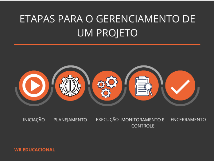 A gestão de projetos é composta basicamente de 5 etapas de suma importância que formarão o ciclo de vida do projeto, garantindo o fluxo de sua execução, bem como uma maior chance de alcance de metas.
