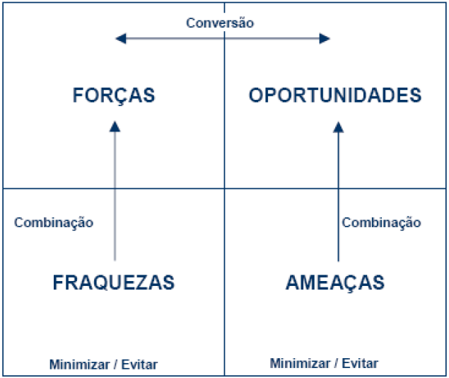 A análise SWOT é muito importante no sentido em que permitirá comparar as capacidades e os recursos internos da entidade com as ameaças e as oportunidades inerentes ao meio envolvente O objetivo da SWOT é definir estratégias para manter pontos fortes, reduzir a intensidade de pontos fracos, aproveitando oportunidades e protegendo-se de ameaças.