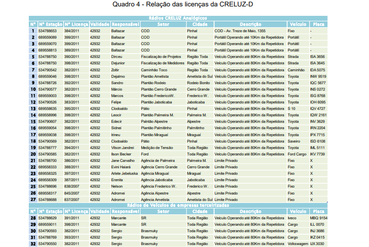 Obs. No caso da CRELUZ foram 10 estações móveis por repetidora (Mínimo) mais quatro estações base/repetidora, totalizando R$ 1.770,43.