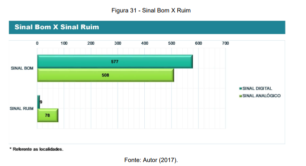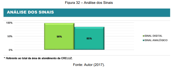 Isso quer dizer que há uma relação de 2% de localidades que ainda enfrentam problemas de cobertura de sinal, mas que na época do sinal analógico era de 15%. Mostrando, com isso, a melhoria efetiva na região de cobertura, conforme Figura 32.