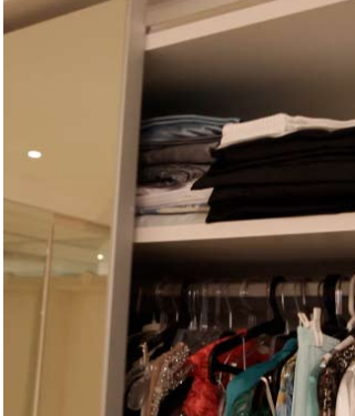 - Ter pelo menos uma tomada no ambiente é importante. Ela será de grande ajuda na hora de dar aquela última alisada no traje escolhido com o ferro de passar. Prefira vaporizadores para as roupas pretas e para as de tecido delicado, pois o equipamento pode ser usado na vertical, com o traje ainda no cabide.