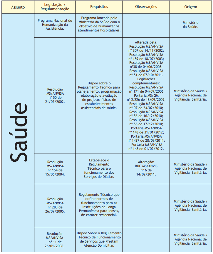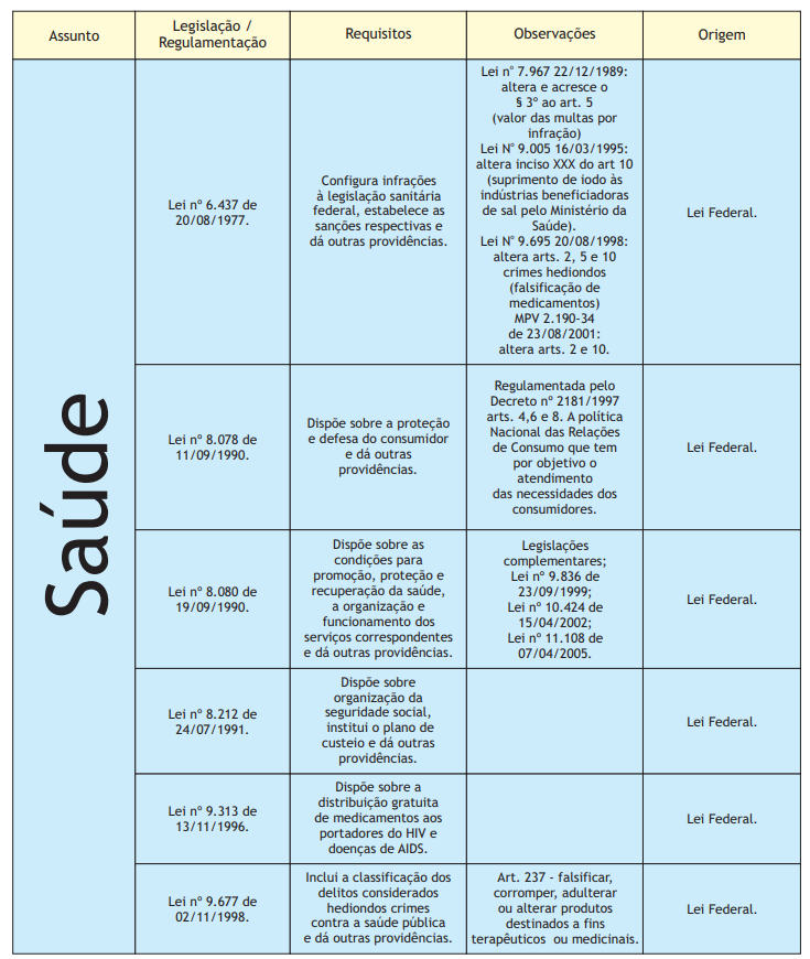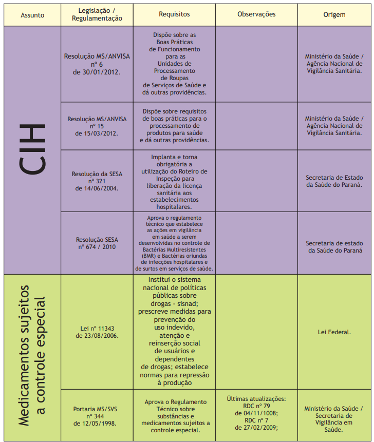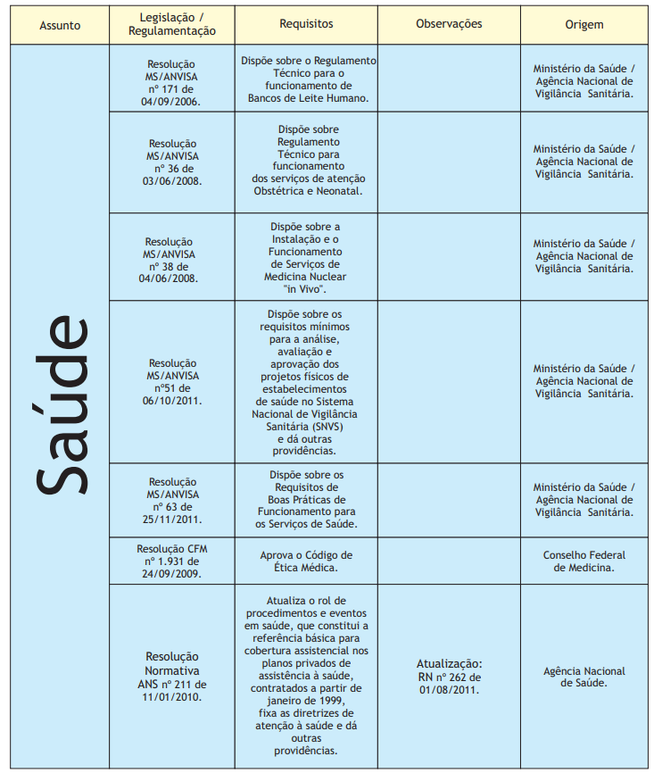 . De forma a facilitar a consulta, as legislações foram agrupadas por assunto e origem, em ordem crescente de data de publicação, entretanto, alguns requisitos abrangentes podendo estar relacionados em mais do que um tema: