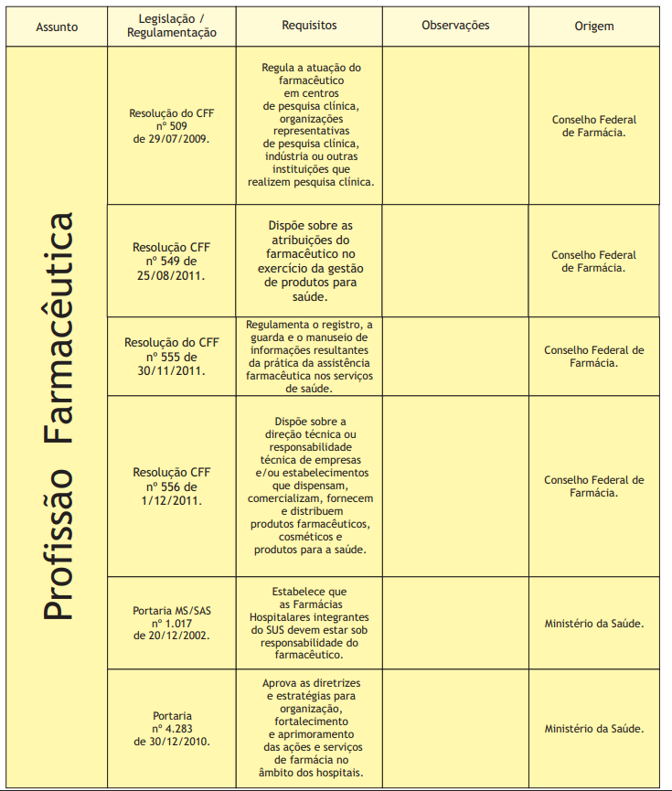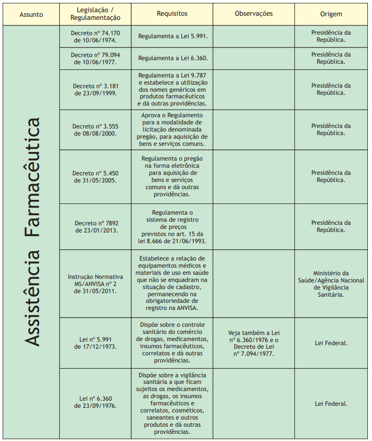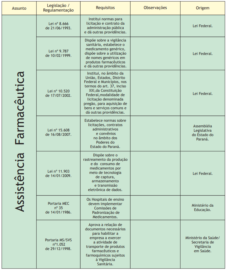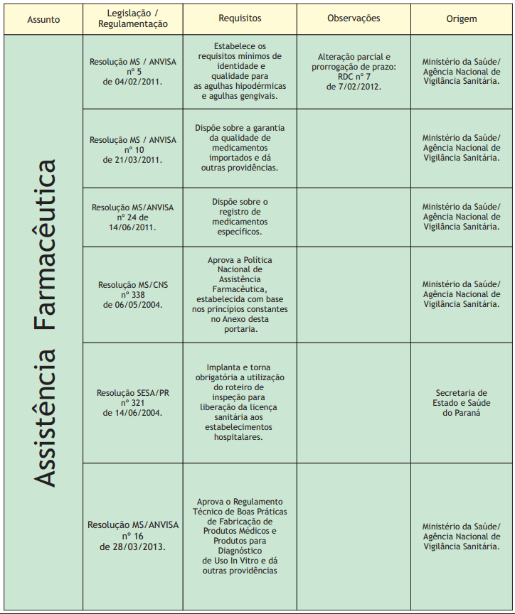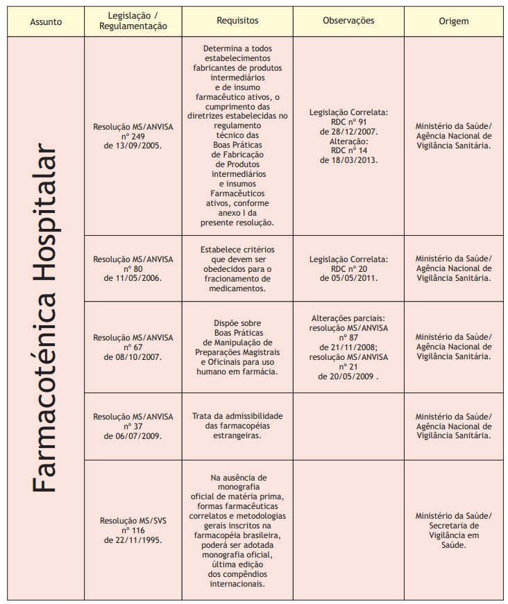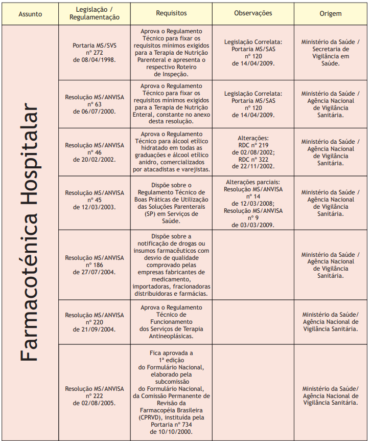 1 Requisitos Legais e Legislações no Âmbito da Farmácia Hospitalar