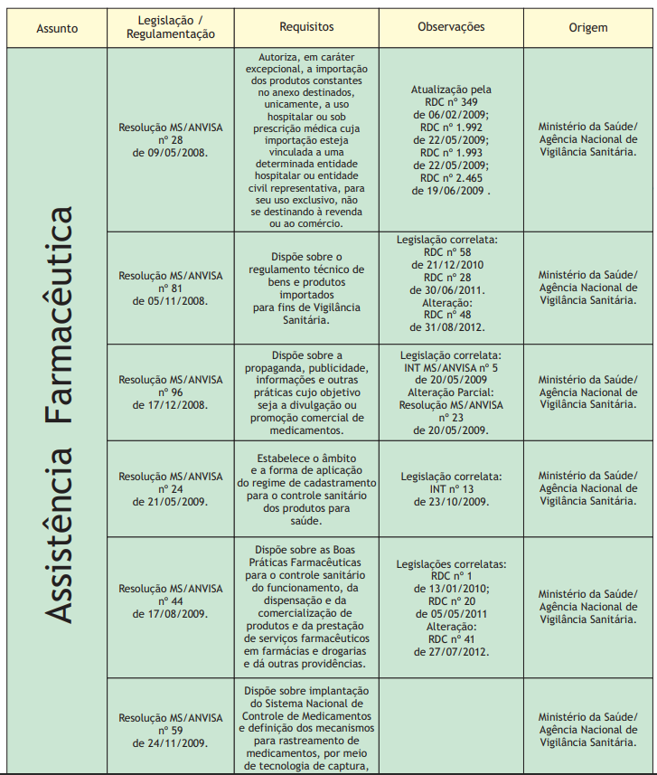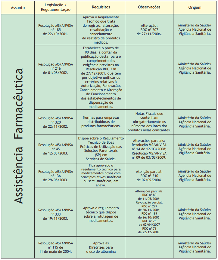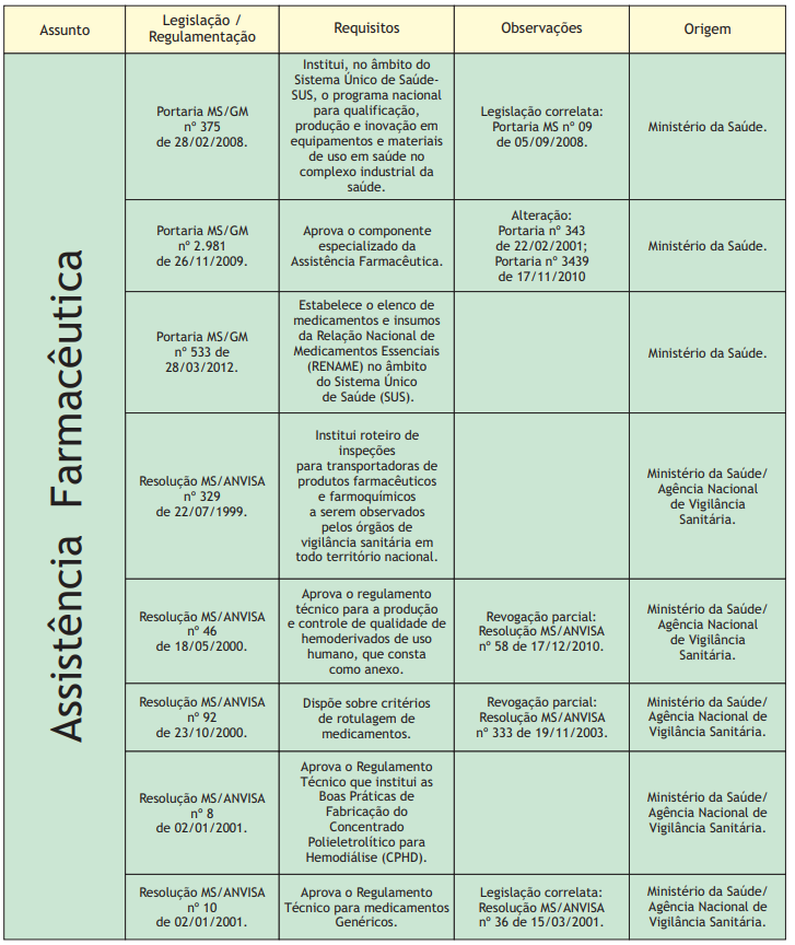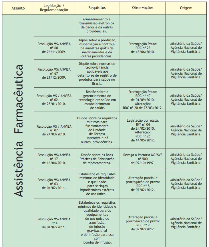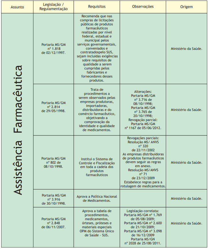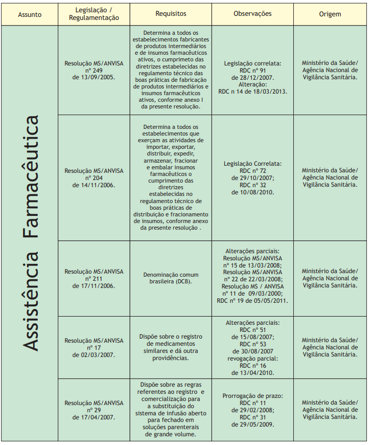 1 Requisitos Legais e Legislações no Âmbito da Farmácia Hospitalar