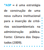 • Relacionar temas como: Agenda 21, A3P e Administração Pública;