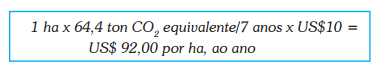 As empresas especializadas estabeleceram que 100 toneladas de madeira, em um ciclo de vida de 7 anos, sequestram 64,4 ton. de dióxido de carbono-equivalente. Logo, a receita do projeto será: