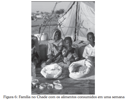 Na Figura 6 é mostrada uma família no Chade, localizado no centro-norte da África, onde seis pessoas gastam US$1,62 por semana com a sua alimentação.