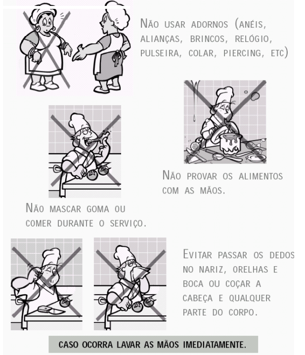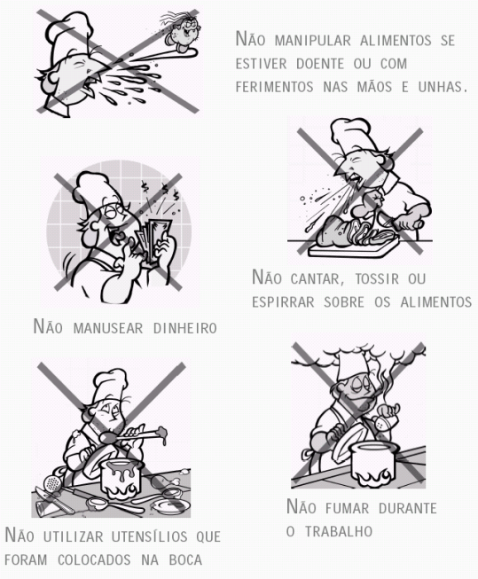 • Evitar conversar, cantar, tossir ou espirrar sobre os alimentos, para que não caia saliva sobre os mesmos;