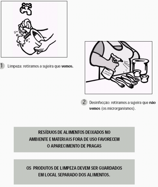 Tudo aquilo que entra em contatos com os alimentos deve ser bem higienizado. Por isso deve ser feita a etapa da limpeza e desinfecção.