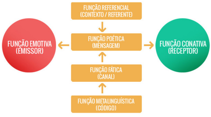 A seguir,você irá encontrar um diagrama com as funções da linguagem e a sua relação com os elementos da comunicação: