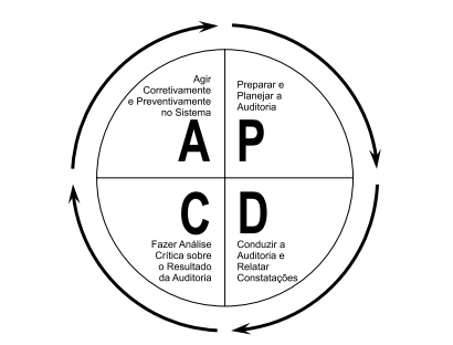 A de Action – ação, onde são realizadas ações corretivas, correspondendo, na auditoria, a agir corretivamente e preventivamente no sistema auditado.