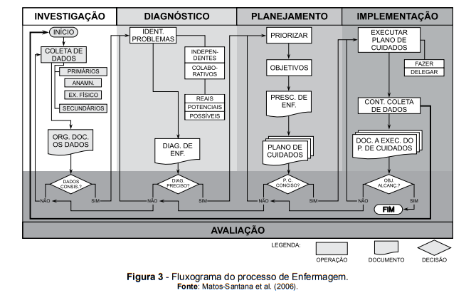 De posse dos dados coletados, inicia-se o momento de diagnóstico (ver Tópico 3.4.), onde são identificados os problemas e redigidas as declarações diagnósticas.