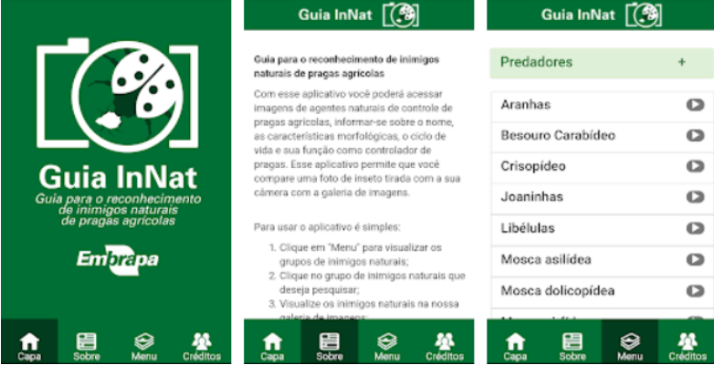 Pensando nisso, o aplicativo Guia InNat tem informações sobre os predadores e parasitoides, o ciclo de vida e as funções desses artrópodes como controladores de pragas.Ele ainda traz imagens desses agentes naturais, tornando mais fácil fazer o controle biológico e o MIP na sua área.