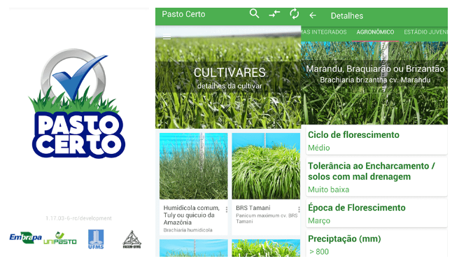 O aplicativo Pasto Certo permite acessar as características das principais cultivares de forrageiras tropicais lançadas pela Embrapa e outras de domínio público.Assim, você consegue identificar as cultivares e se informar sobre as principais recomendações de uso de cada cultivar, e com isso, melhorar o planejamento da sua pastagem.