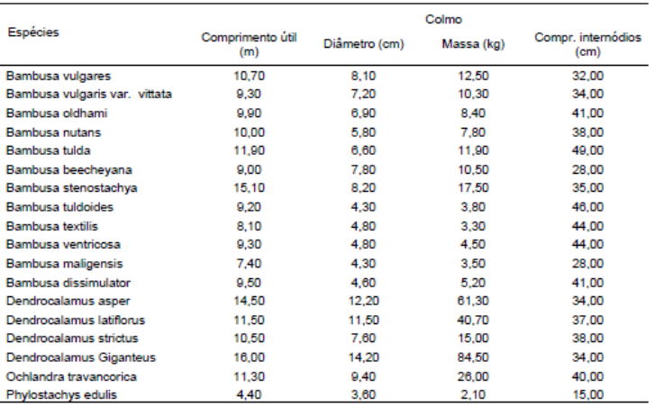 Relaciona as principais características de algumas espécies de bambu.