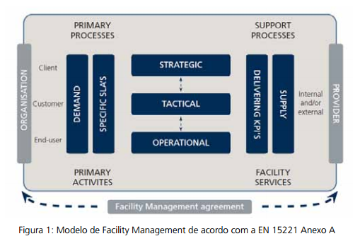 A norma europeia EN 15221 combina diferentes visões do tema. O quadro e textos seguintes foram retirados da EN 15221:2005, que foi elaborada pelo Comité Técnico CEN/TC 348 “Facility Management”.