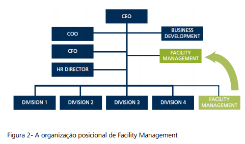 Inicialmente os FM posicionavam-se como uma função de linha. Isto foi necessário, porque estes departamentos não só executam as tarefas estratégicas descritas na norma EN 15221 (como a definição da procura), mas também realizam Facility Services por conta própria. Como as empresas começaram a colocar os serviços em outsourcing e a concentrarem-se na função de gestão, o FM tornou-se cada vez mais uma função estratégica e, portanto, foi implementado como uma função de pessoal.