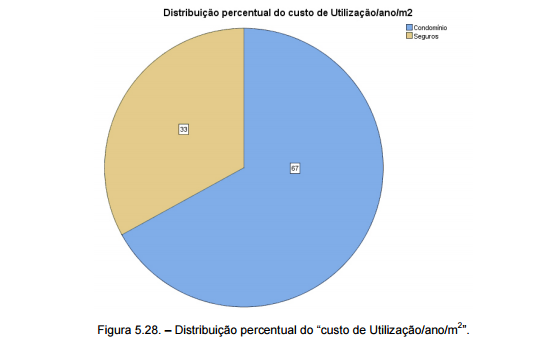 O gráfico circular, representado na figura 5.28., define qual o peso de cada fator de custo no “custo de Utilização/ano/m2