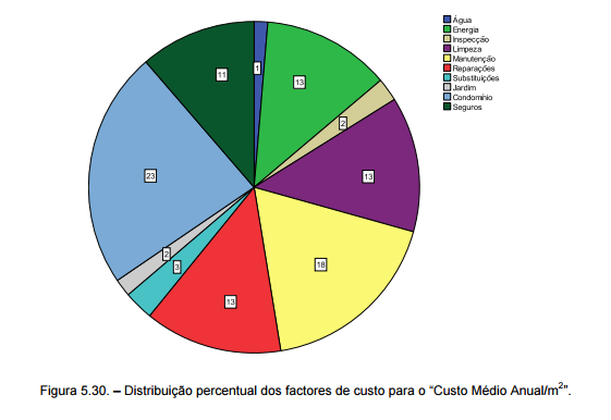 Aprofundando a análise da distribuição percentual, na figura 5.30. encontra-se o valor da percentagem de cada um dos factores de custo no “Custo Médio Anual/m2”.