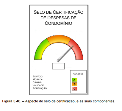 O aspecto do selo de certificação final está presente na figura 5.46. A escala de cores corresponde a três classes, A, B e C, sendo A a melhor e C a pior. A aplicação do selo será efetuada no ponto seguinte.