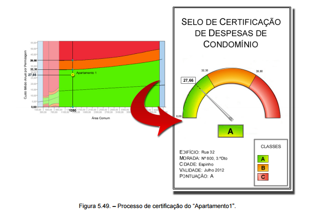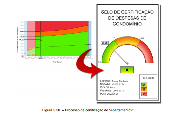 A partir dos dados obtidos para os dois apartamentos em estudo, e aplicando o método descrito no Capítulo 5, ambos obtiveram a certificação A. Isto significa que o cruzamento dos dados “Custo Médio Anual por Permilagem” e “área comum” se situa dentro do intervalo de confiança para 95%.