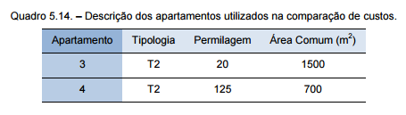 No quadro 5.14. encontram-se os valores da permilagem de cada apartamento, bem como o valor da