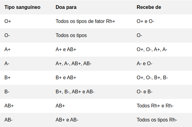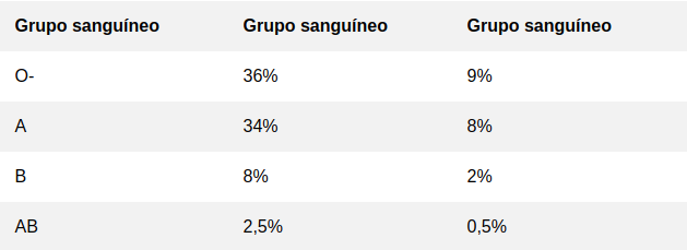 De acordo com a Santa Casa de São Paulo, essa é a prevalência dos tipos de sangue na população: