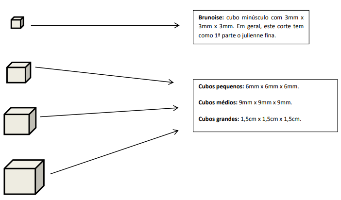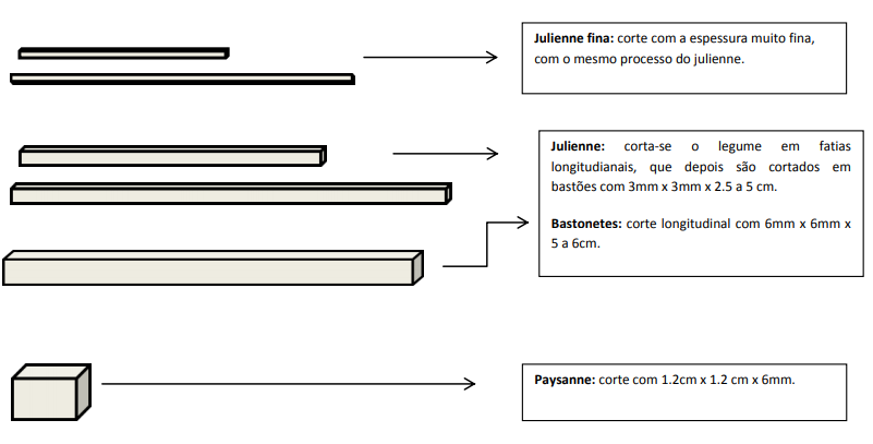 - Mirepoix: mistura de vegetais usada para dar sabor aos fundos, molhos e outras preparações culinárias. O tamanho dos vegetais é diretamente proporcional ao tempo de cocção e ao tipo de produto final. Porcentagem básica: 50% de cebola + 25% de salsão + 25% de cenoura.
