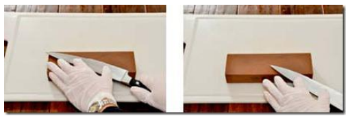 - Com movimento de baixo para cima, deslize a faca sobre a pedra, mantendo pressão uniforme durante o processo;